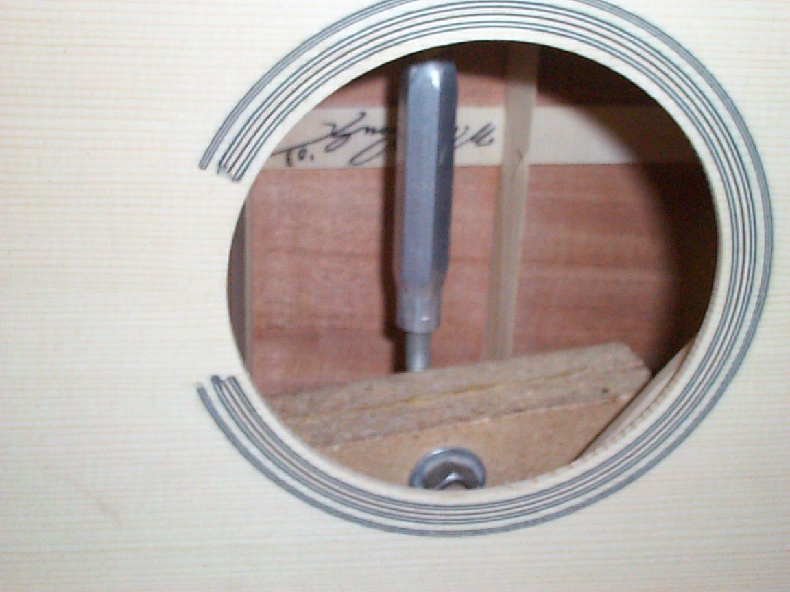 Inside the guitar is the spreader to make sure the sides are in contact